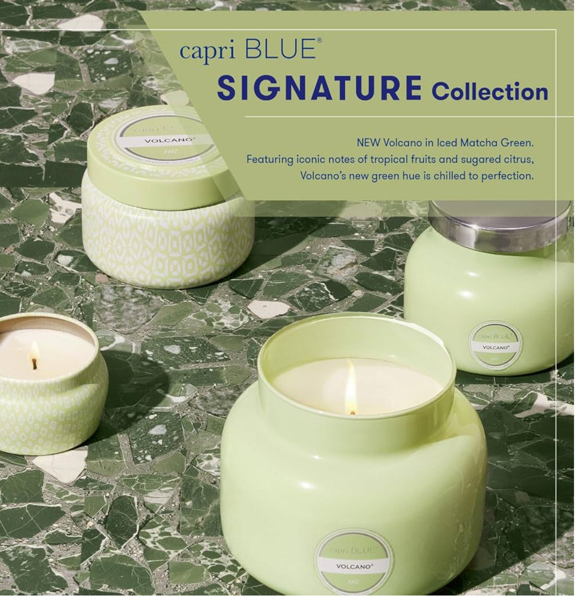 Capri Blue Volcano 3oz candle tin. Signature collection. Iced Matcha tin.