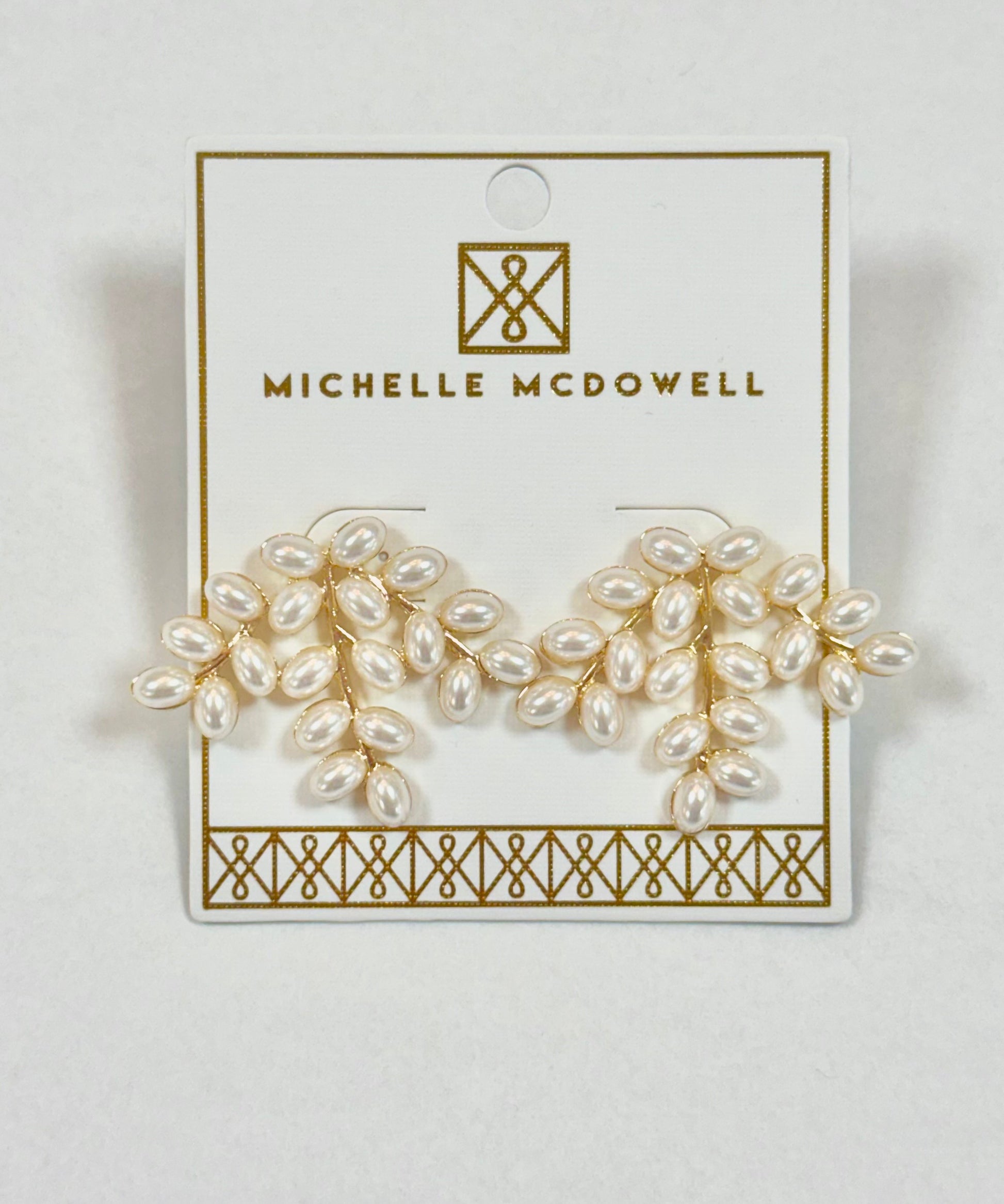 Trinity faux pearl and gold tone earrings. post back. 1 1/8'L' x 1 1/2'' W